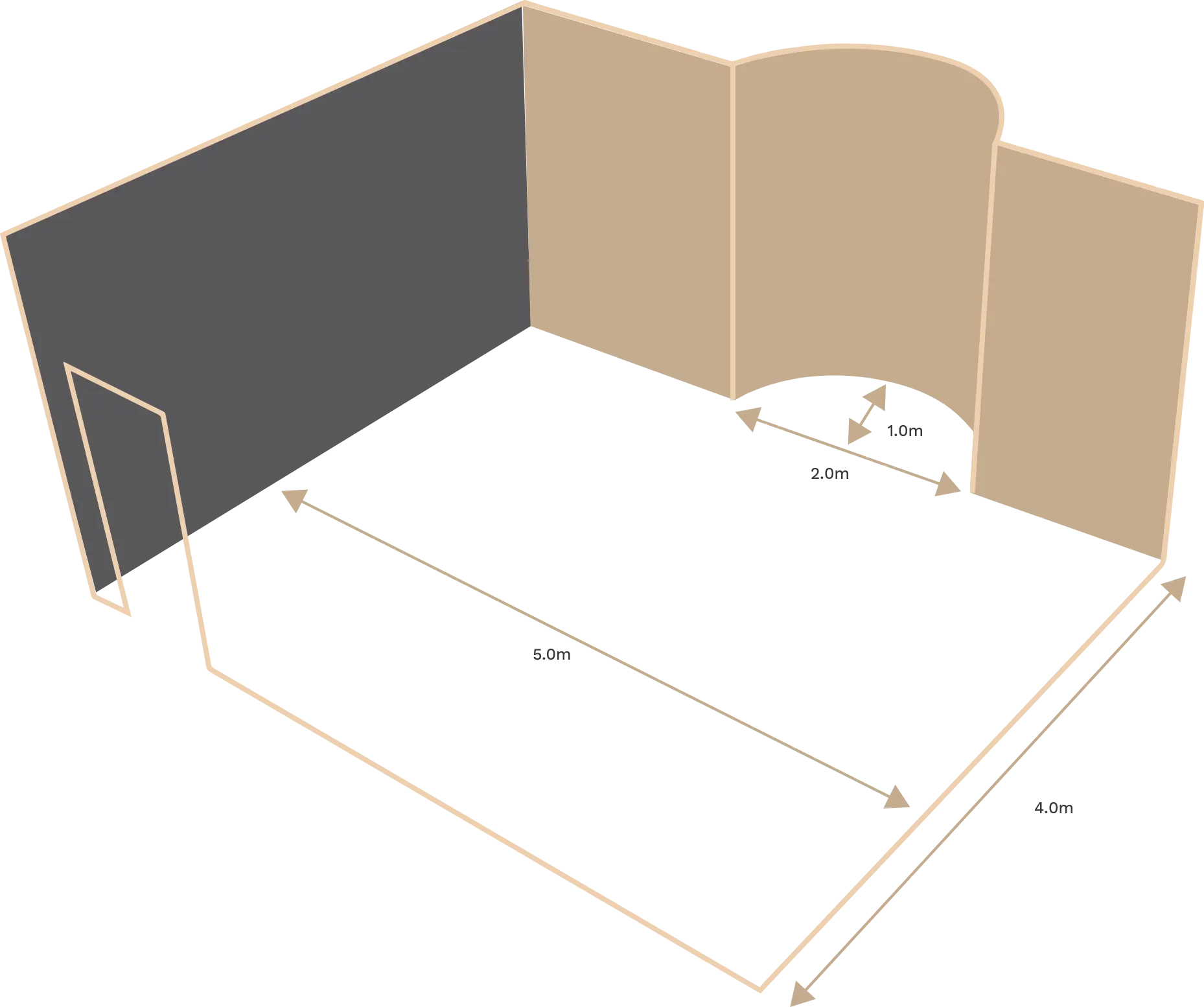 Recess : 2.0m x 0.5m = 1.0m