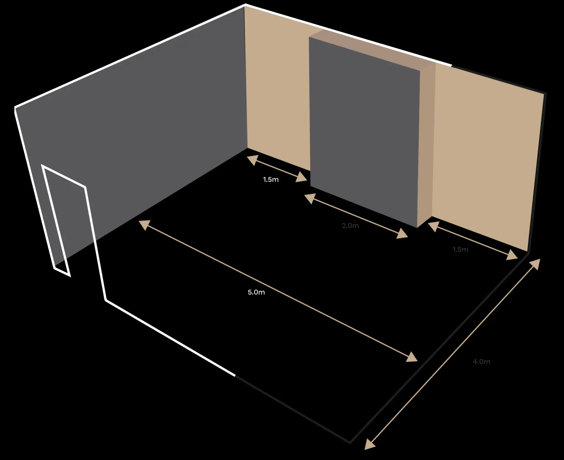 Length: 1.5m + 2.0m + 1.5m = 5.0m