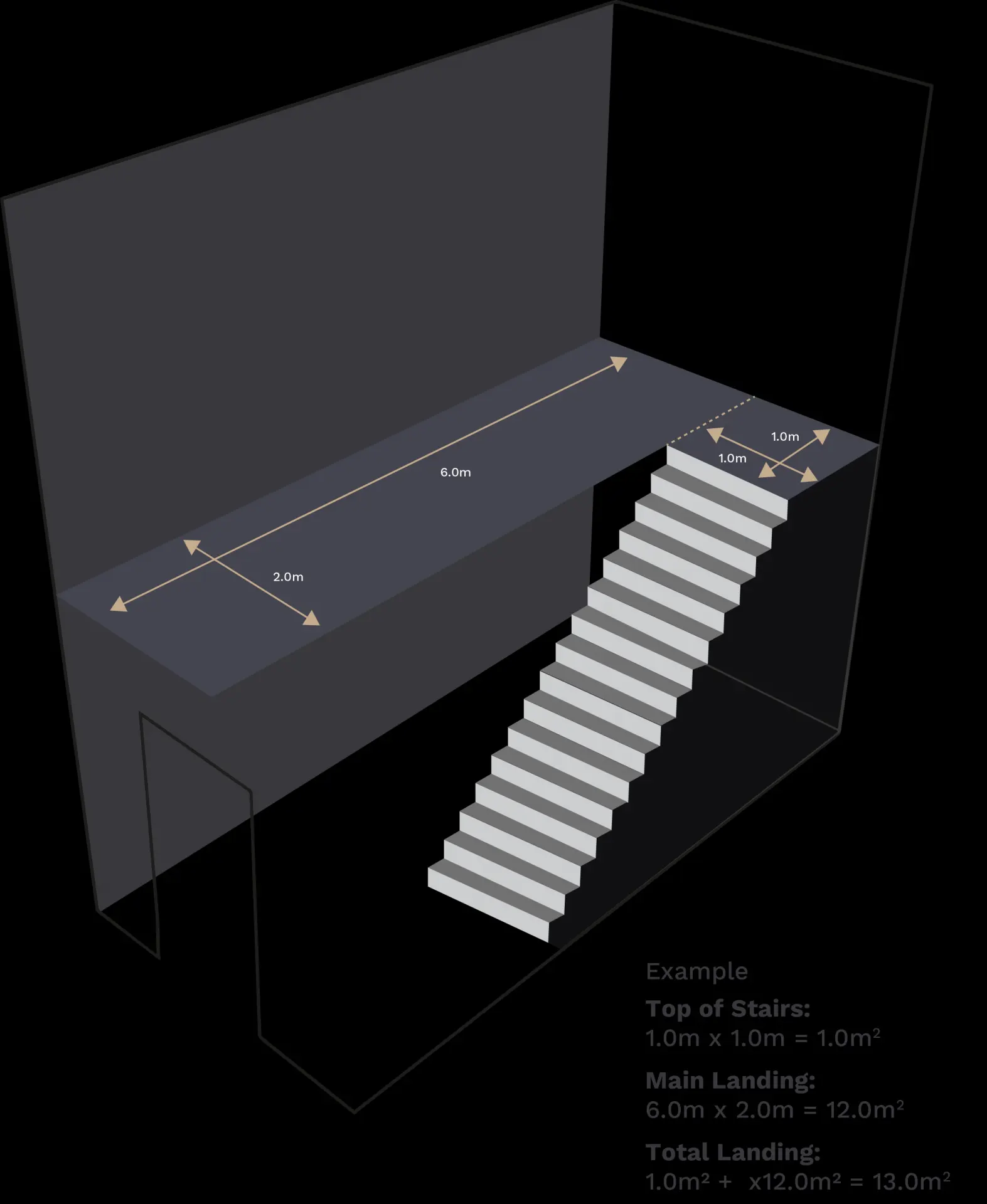 Main Landing : 6.0m x 2.0m = 12.0m2