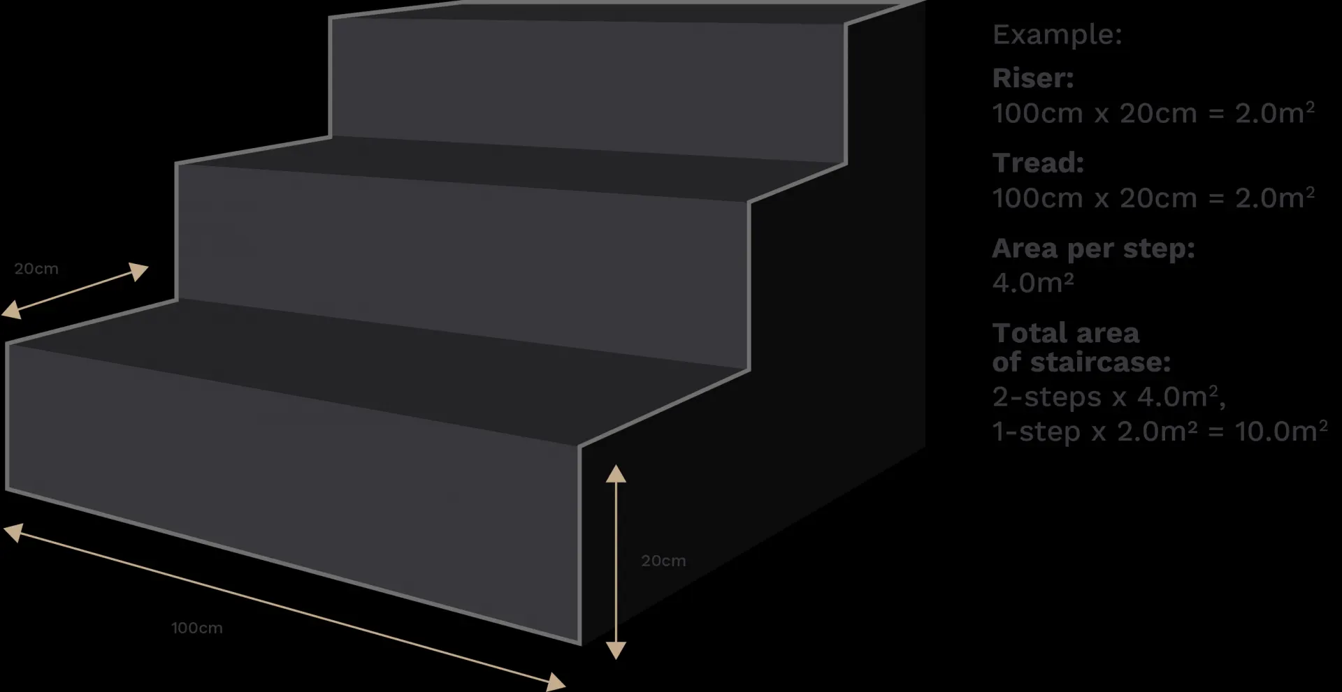 Top of Stairs : 1.0m x 1.0m = 1.0m2