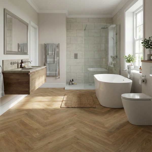 Somerset Lyme – Natural Wood Herringbone Vinyl Flooring with Warm Tone