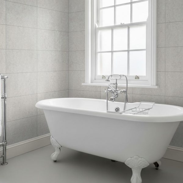 The Torino Light Grey Multi Tile waterproof SPC wall panel combines modern style with practicality, offering a sleek and contemporary wall solution. Measuring 2800mm long, 600mm wide, and 4.5mm thick, each panel replicates the look of 600mm x 300mm tiles when installed, complete with authentic grout line detailing for a realistic, high-quality finish.